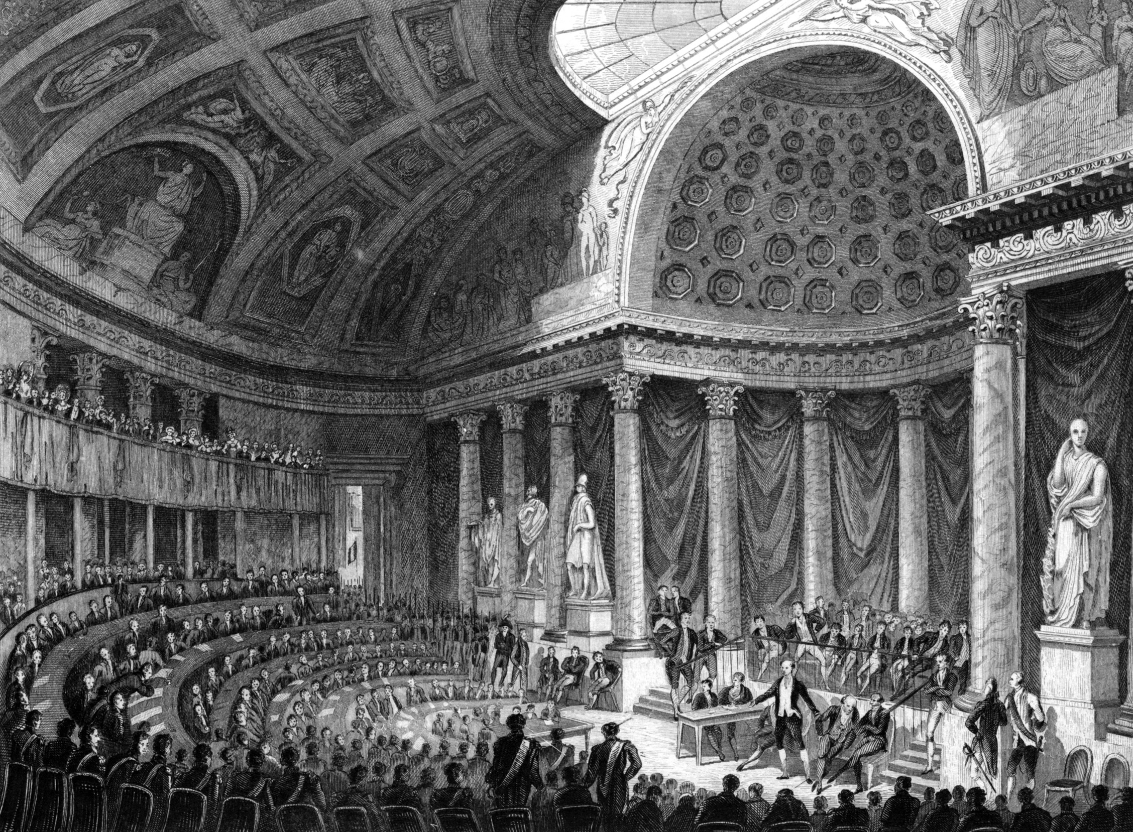 Above: Jules Gaildrau, a depiction of a meeting of the Society of the Rights of Man, a successor organization to the Society of the Friends of the People, in Victor Duruy, Histoire populaire contemporaine de la France, vol. 1 (Paris: Ch. Lahure, 1864). Public domain via Bibliothèque Nationale de France.