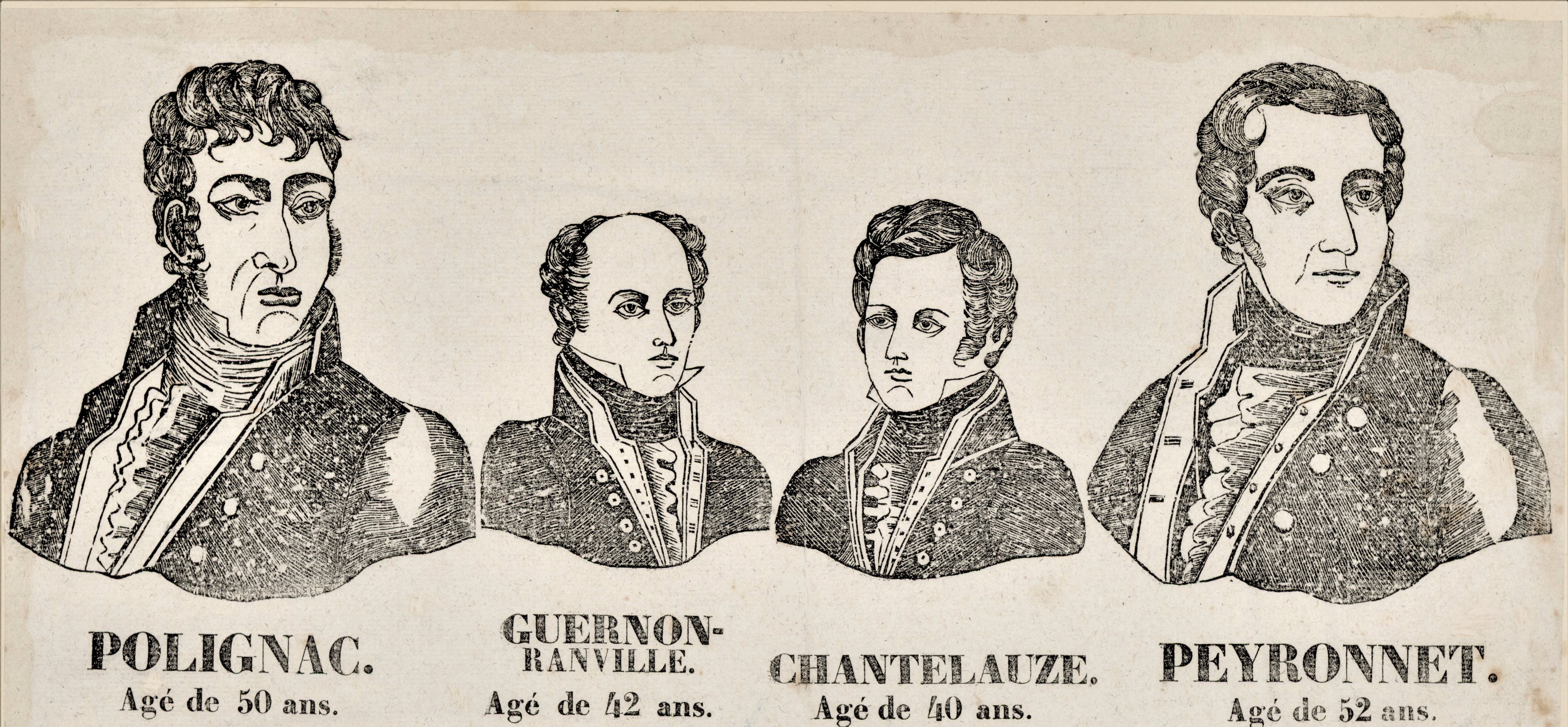 While the National Guard paraded on the Champ de Mars, Jules de Polignac was cooling his heels in the prison fortress of Vincennes, seven miles or 11 kilometers to the east. Polignac was not, at least, alone. The prison also held three of his former colleagues: former justice minister Jean de Chantelauze, former education minister Martial de Guernon-Ranville, and former interior minister Pierre-Denis de Peyronnet.