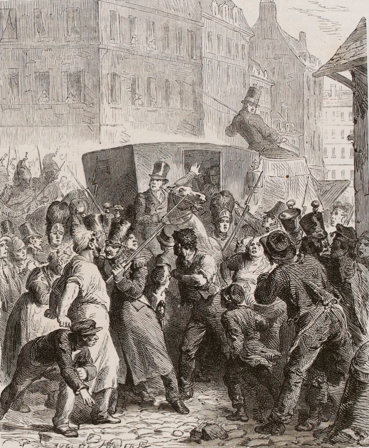 But Paris also featured a range of semi-secret societies and clubs. Some, like the Francs Régenérés, were actively revolutionary and often predominantly composed of students. More prominent was the Société des Amis du Peuple, or Society of the Friends of the People. The Friends of the People met publicly — arguing that France’s law prohibiting unauthorized gatherings of 20 or more people had been nullified by the revolution. It had support from prominent progressive politicians, and organized itself as a pressure group to urge Louis-Philippe and his government in a more progressive direction.3
