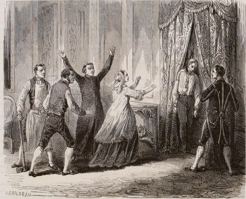 Jules Gaildrau, “Death of the Prince of Condé,” in Victor Duruy, Histoire populaire contemporaine de la France, vol. 1 (Paris: Ch. Lahure, 1864). Public domain via Bibliothèque Nationale de France.